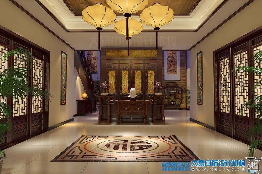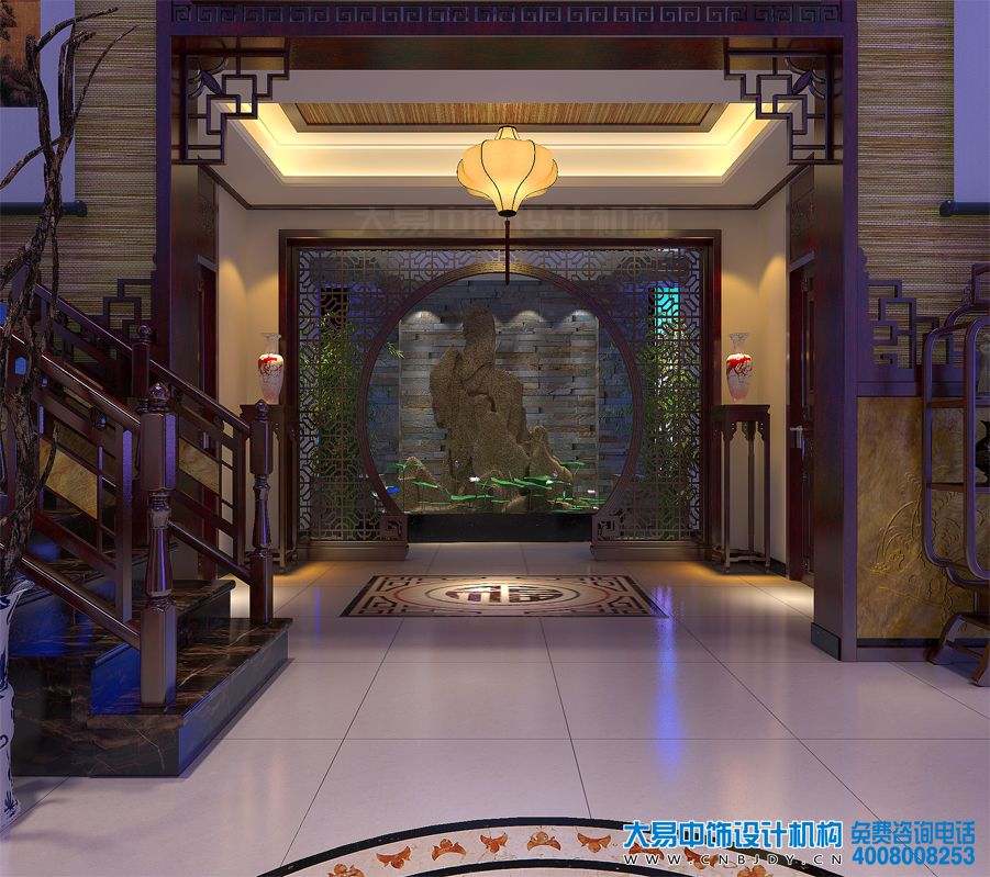別墅門廳時尚美觀,中式古典畫的裝飾,表現出極致高雅的東方風韻