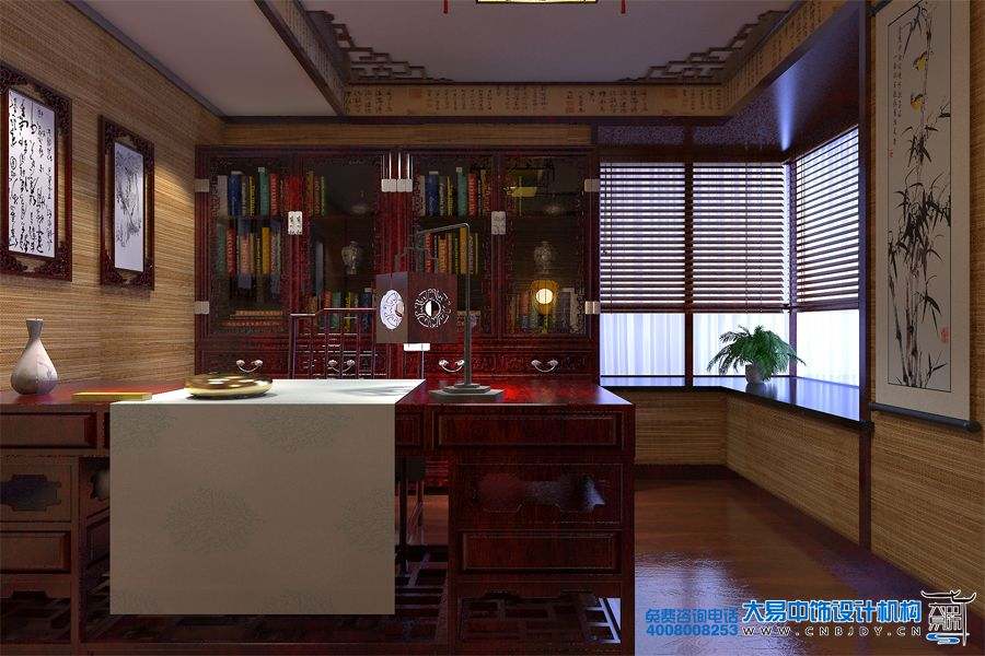 中式書房典雅古韻,塑造了安寧的書香空間