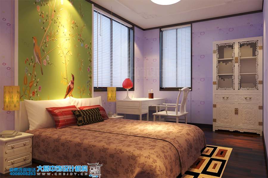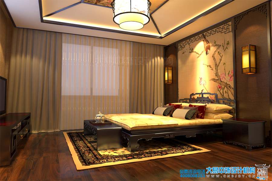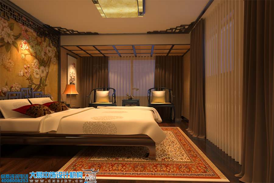 老人房臥室采用了暗色調和素雅圖案為主,營造出深沉、穩重的氣氛