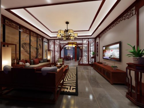 別墅-古典中式客廳設計效果圖!
