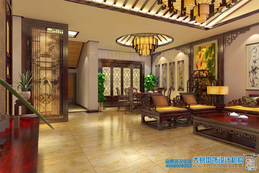 山東濰坊220平米簡約中式住宅裝修效果圖