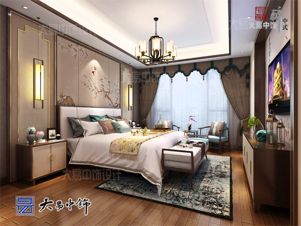 臥室新中式設計裝修,依循了臥室空間設計的最大原則——摒棄繁縟,一切就簡。木質床具、棉麻床飾以及暖色調地毯,帶給冷色調裝飾的空間以溫馨和暖意,加上燈光、亞麻色壁紙的裝飾,為家人營造可以安然入眠的氛圍。