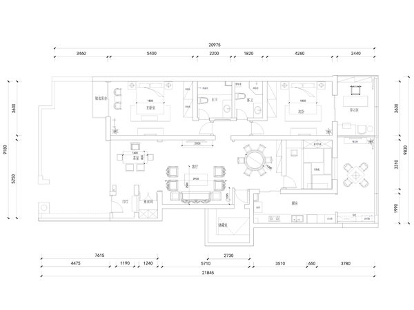 戶型為四居加前后庭院,整體戶型未做大的調整,僅通過局部修改便使空間更加完整合理。