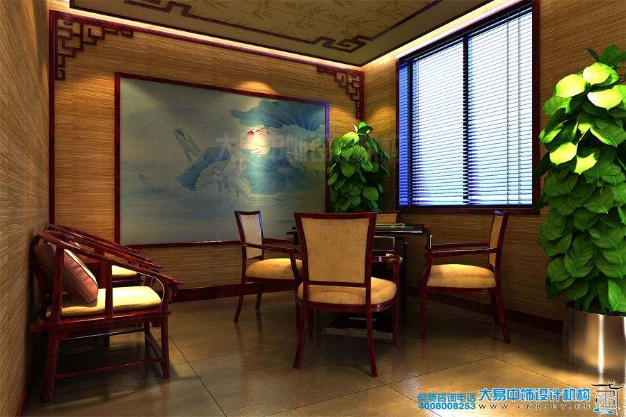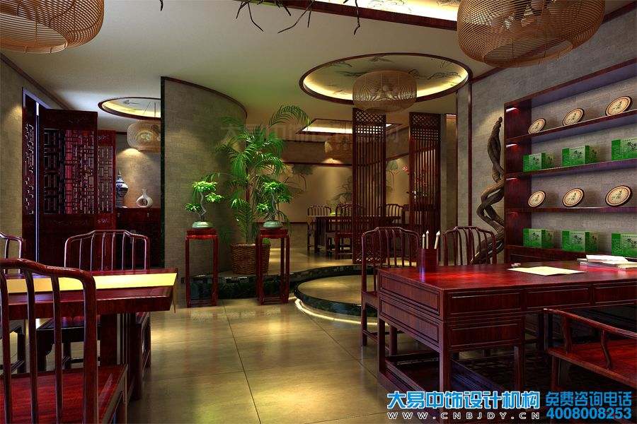案例賞析:這是一套新中式茶樓裝修效果圖,它位于山東泰安市區。,因茶館裝飾設計定位于新中式,所以,大易中飾設計師利用中式文化深厚的意蘊和時尚創意的現代藝術基調,整體打造出帶來禪韻和寧靜的感覺。讓茶館雅然之意,從氛圍營造上表達得淋漓盡致。當然,設計師還結合現代人的審美觀點,以淺色在茶館中始終與暖意的裝飾、深沉的實木家具協調點綴,加之腳下灰色的仿古地磚的鋪設,窗格花掉、自然綠意的修飾,不但有種復古的裝飾氛圍,還吸取茶道意境的精粹,為進入茶館的飲茶者們營造出清新悠然的休閑效果。