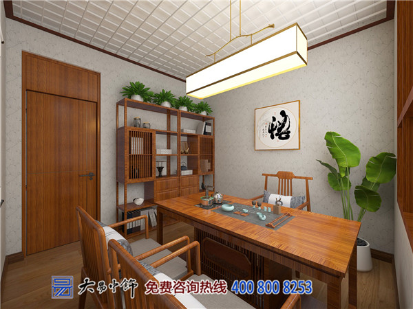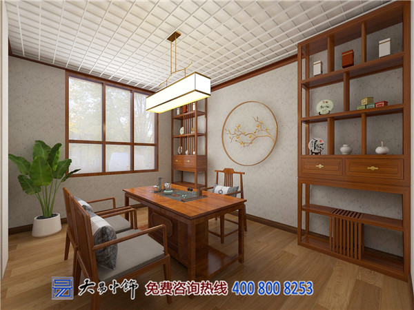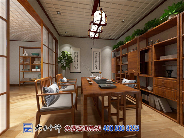 案例賞析:位于河南開封的茶樓想要設計一款中式風格,要求有中式文化的氛圍又有現(xiàn)代的簡約,大易中飾設計采用新中式設計風格,木質裝飾來營造東方文化氛圍。